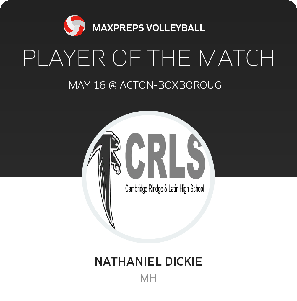 May 16, 2022: Acton, MA 01720 In Monday's league contest, the Cambridge Rindge & Latin Falcons (Cambridge, MA) volleyball squad edged the host Acton-Boxborough Colonials (Acton, MA), by a margin of 3-2.