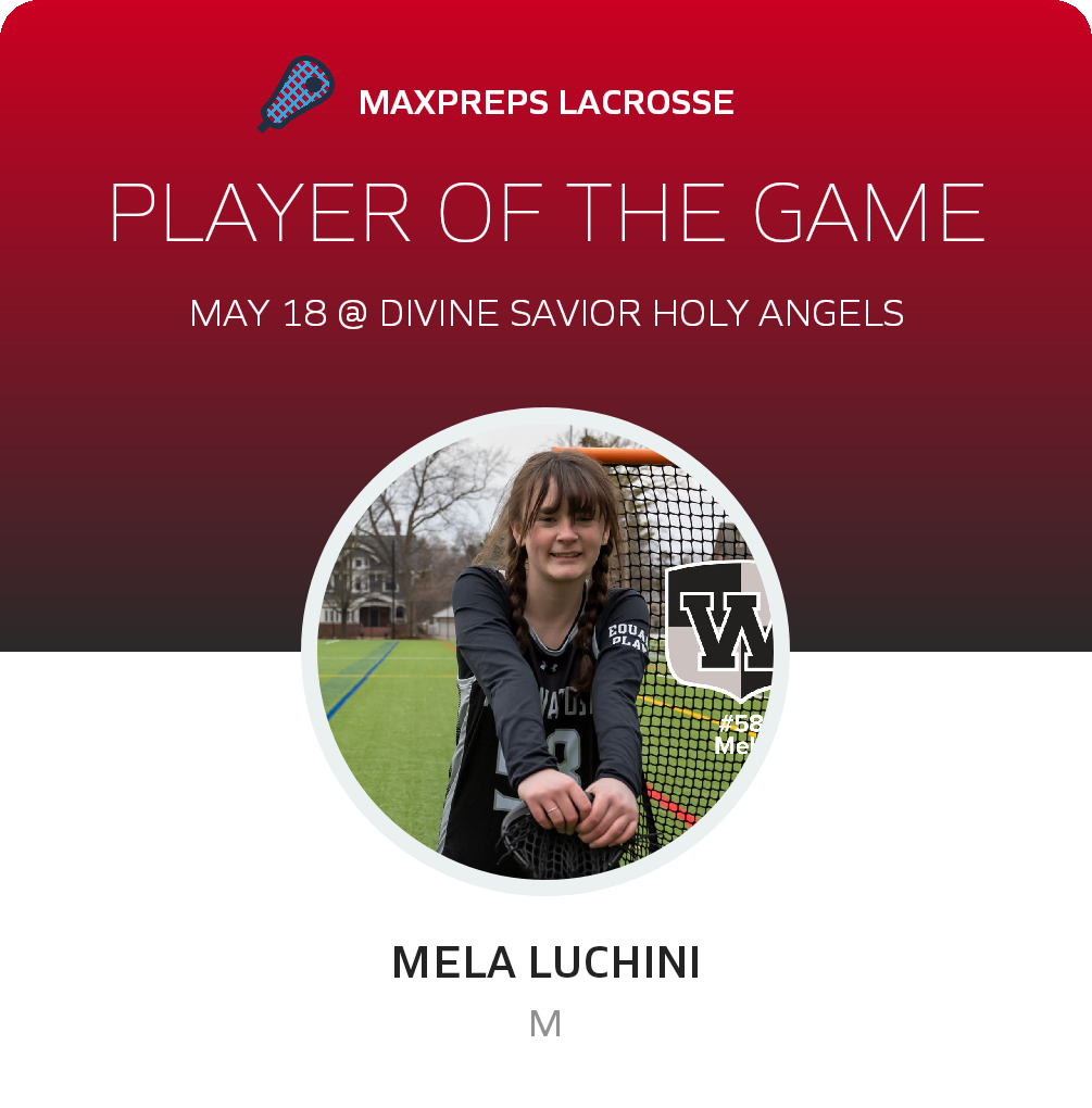 Congratulations to #58 Mela Luchini for being selected the Wauwatosa West/Wauwatosa East Girls JV Lacrosse Player of the Game.