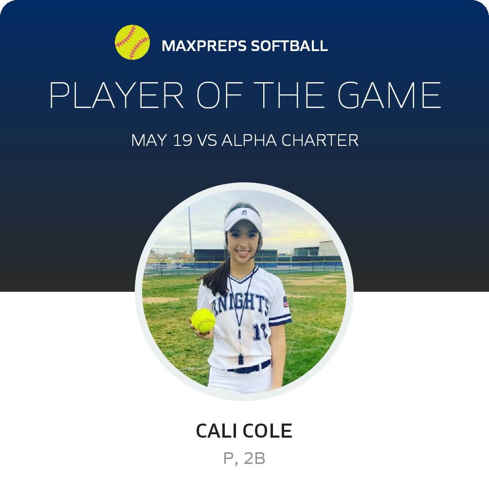 May 19, 2022: Merced, CA 95348 The Stone Ridge Christian Knights (Merced, CA) softball routed the visiting Alpha Charter Angels (Elverta, CA), 12-0 in Thursday's non-league bout.