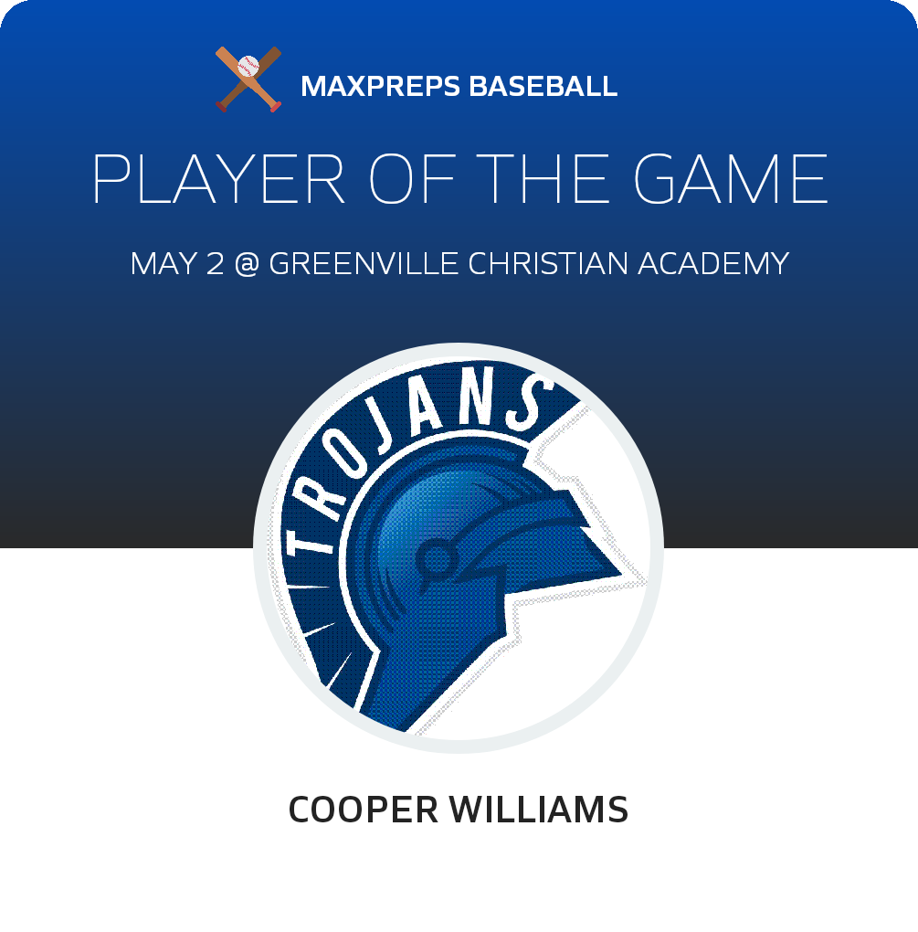 Congratulations to #9 Cooper Williams for being selected the Bethel Christian Academy Baseball Player of the Game.