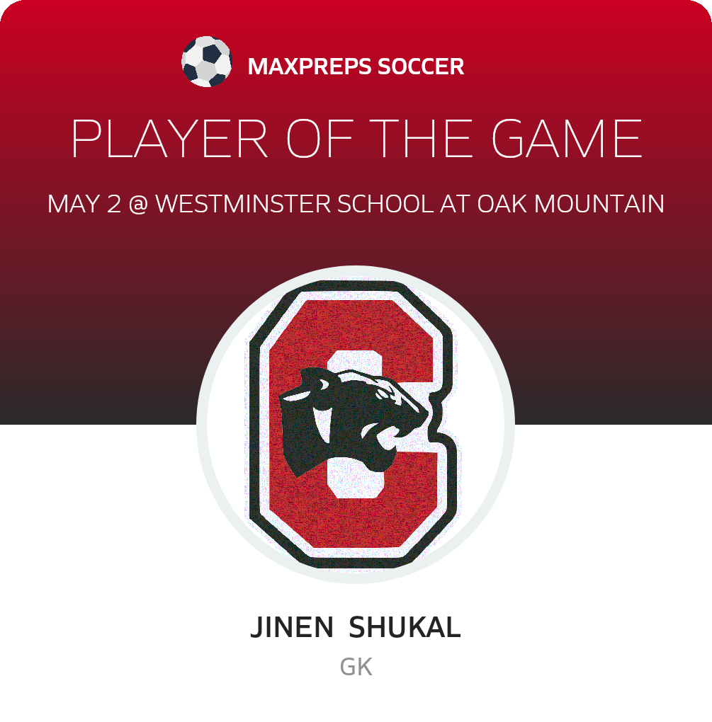 The Westminster School at Oak Mountain (Birmingham, AL) varsity soccer team won Thursday's home playoff match against Collinsville (AL) by a score of 4-0.