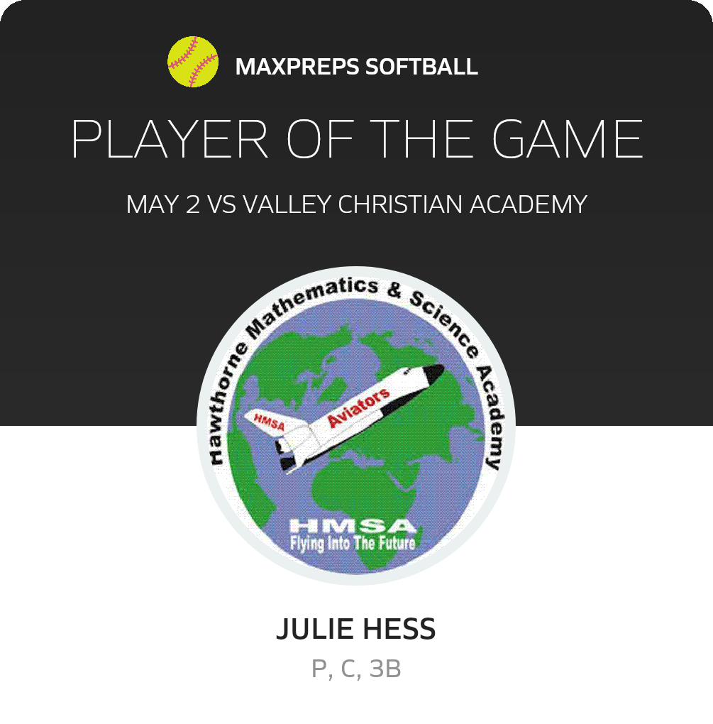 May 2, 2024: Hawthorne, CA 90250 The Hawthorne Math & Science Academy The Aviators (Hawthorne, CA) softball routed the visiting Valley Christian Academy Lions (Santa Maria, CA), 9-2 in Thursday's non-league bout.