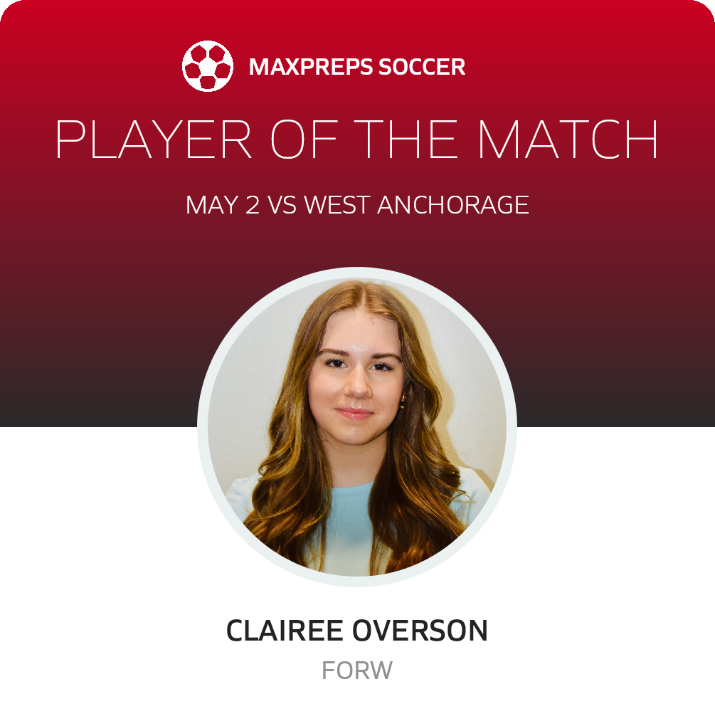 Congratulations to #18 Clairee Overson for being selected the Juneau-Douglas Girls Soccer Player of the Match.