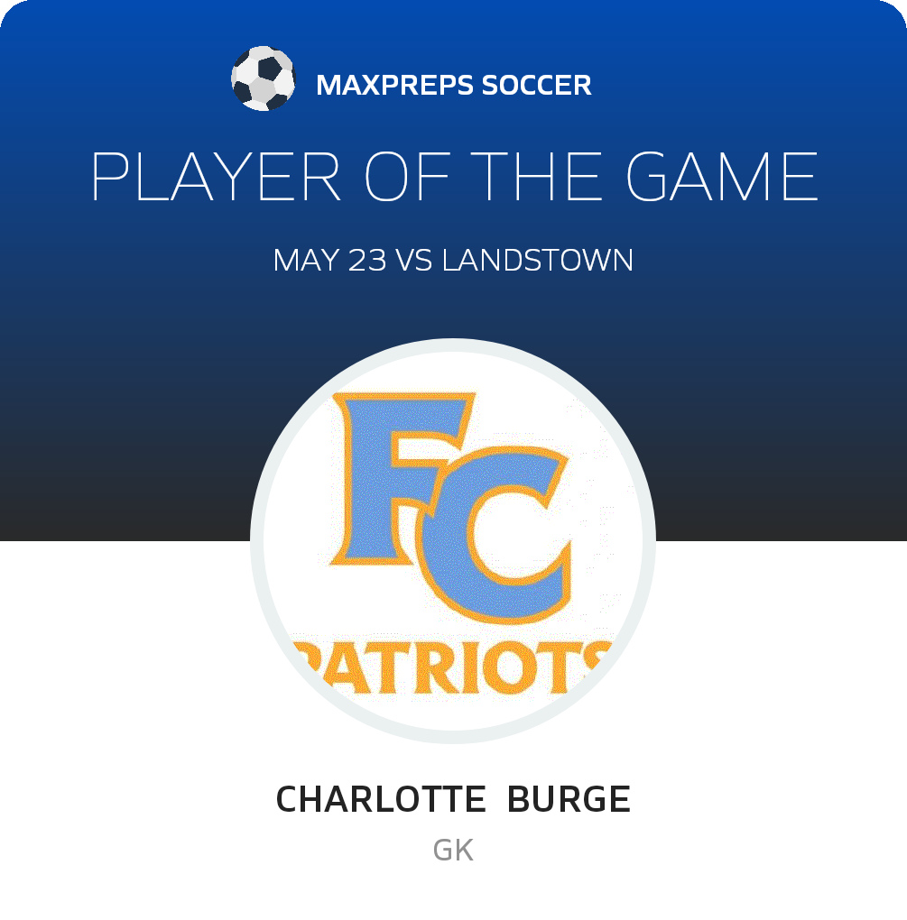 Congratulations to #1 Charlotte Burge for being selected the First Colonial Girls Soccer Player of the Match.