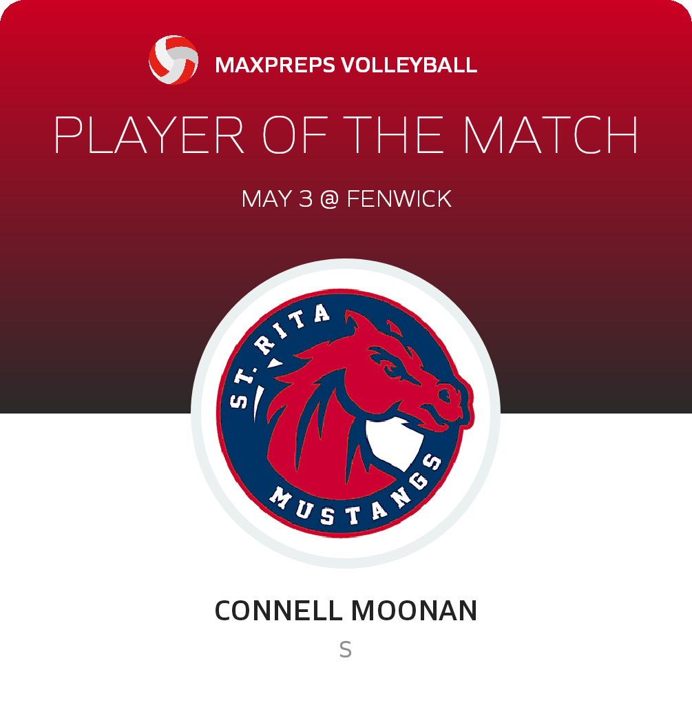 May 3, 2022: Oak Park, IL 60302 In Tuesday's league contest, the St. Rita Mustangs (Chicago, IL) volleyball squad were winner over the host Fenwick Friars (Oak Park, IL), by a margin of 2-0.