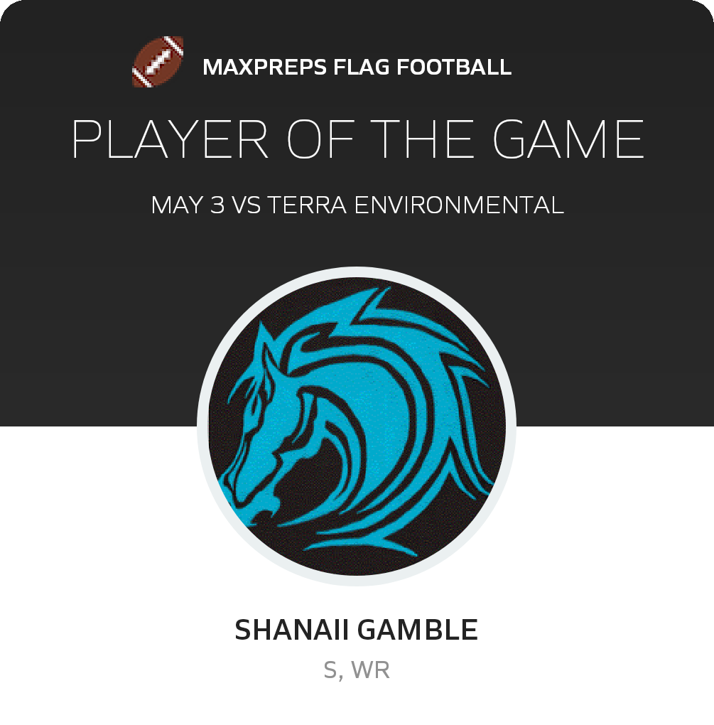 Congratulations to #22 Shanaii Gamble for being selected the Somerset Academy (Silver Palms) Girls Flag Football Player of the Game.