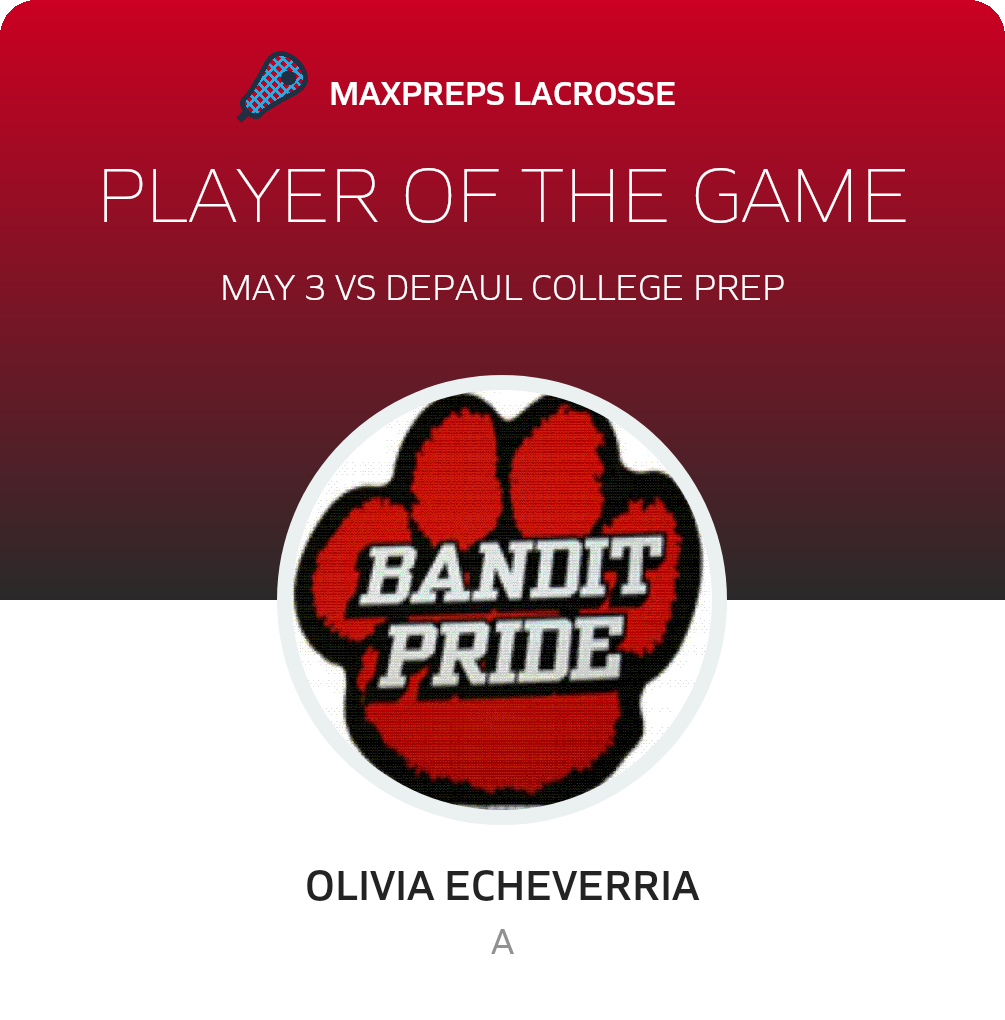 Congratulations to #52 Olivia Echeverria for being selected the Resurrection Girls Lacrosse Player of the Game.