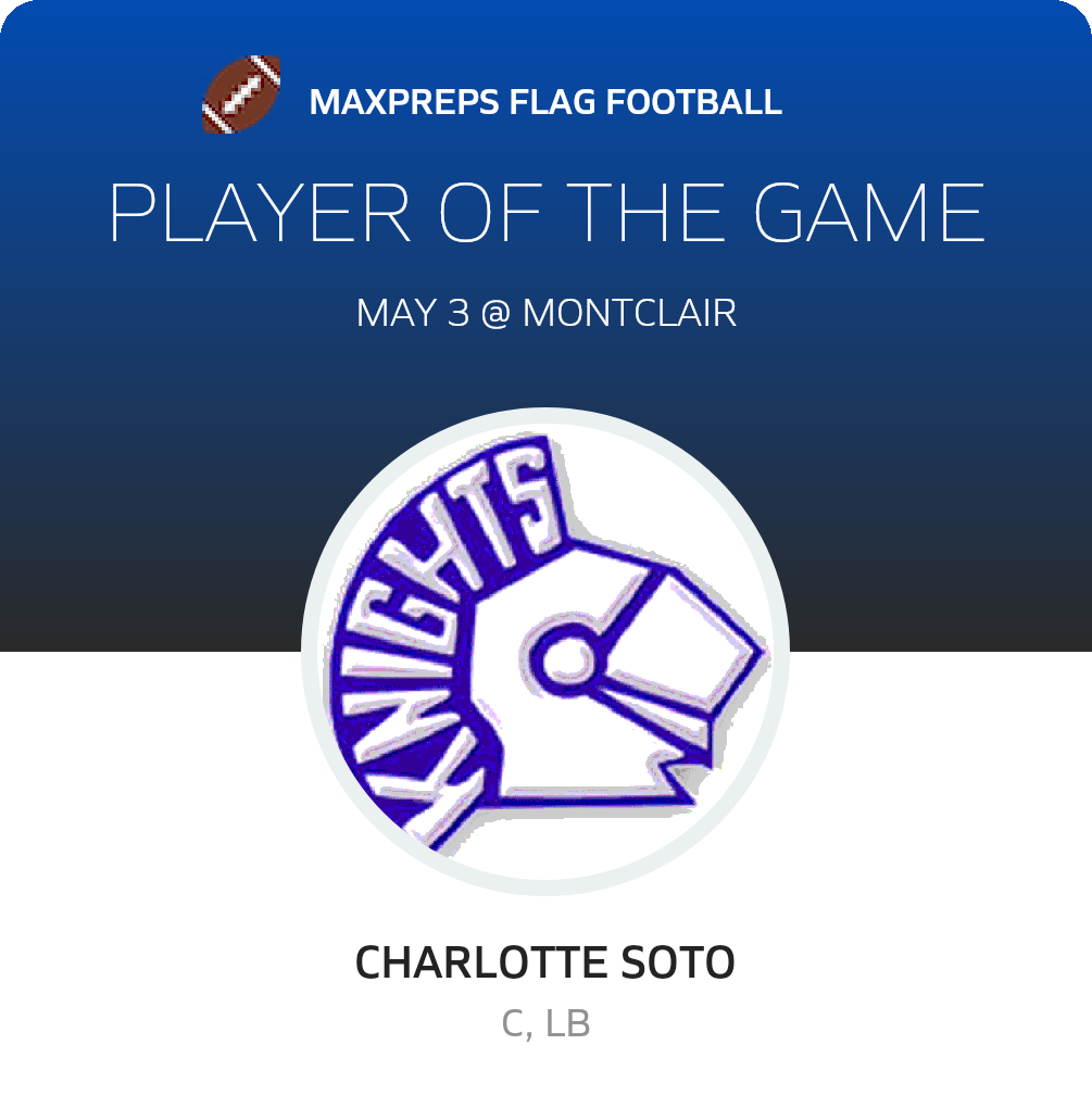 Congratulations to #4 Charlotte Soto for being selected the Irvington Girls Flag Football Player of the Game.