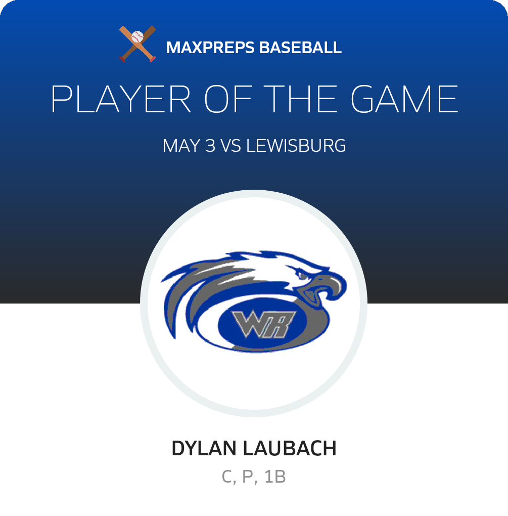 Congratulations to #21 Dylan Laubach for being selected the Warrior Run JV Baseball Player of the Game.