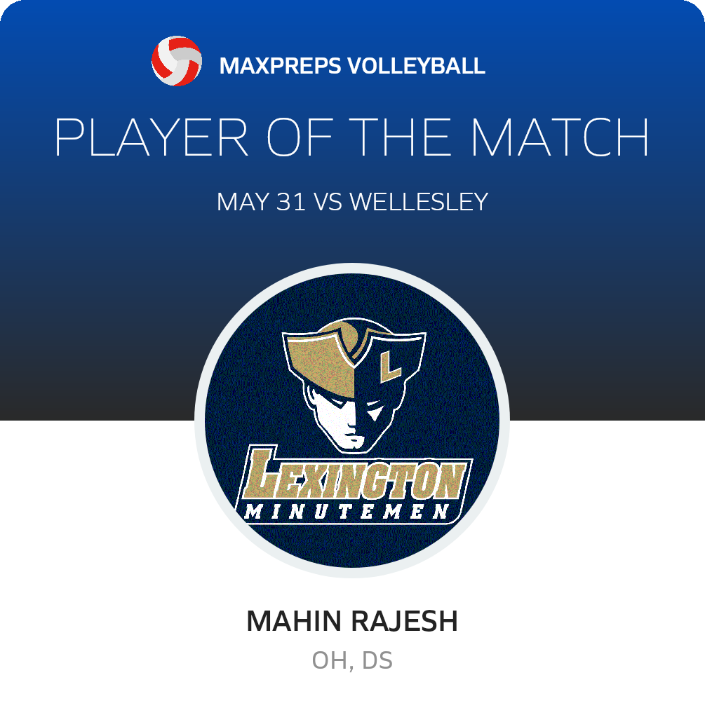 Congratulations to #14 Mahin Rajesh for being selected the Lexington Boys Volleyball Player of the Match.