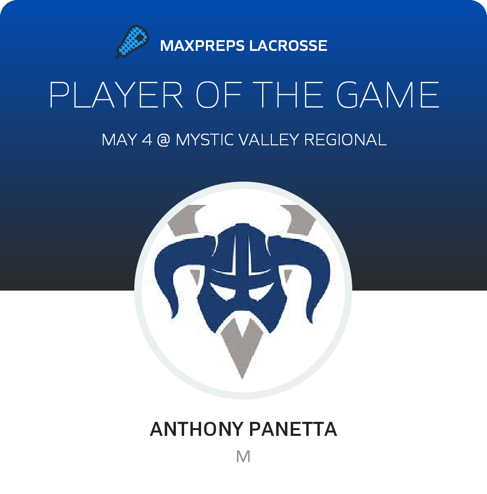 Congratulations to #29 Anthony Panetta for being selected the Nashoba Valley Tech Lacrosse Player of the Game.