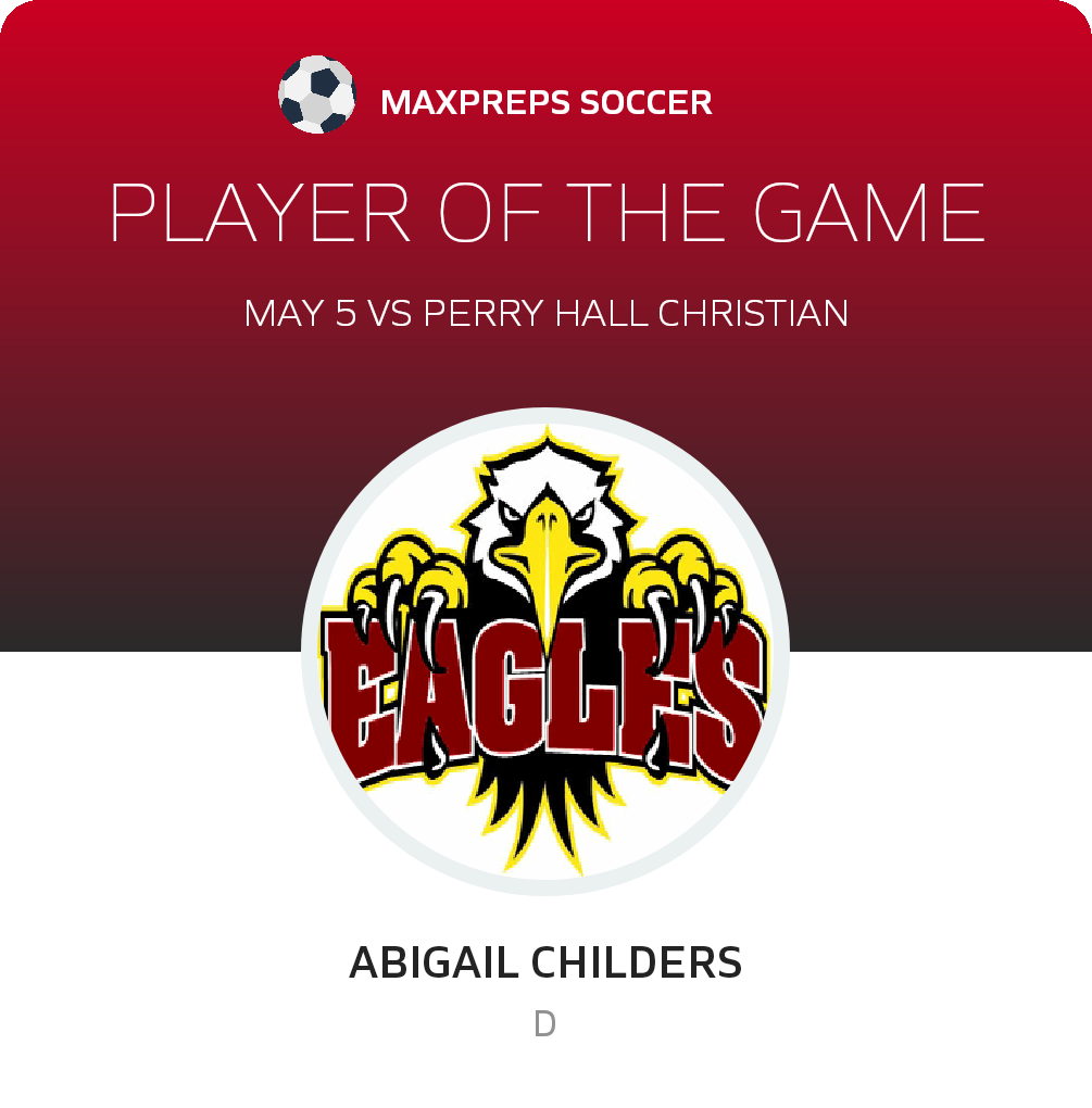 Congratulations to #16 Abigail Childers for being selected the Harford Christian Girls Soccer Player of the Match.