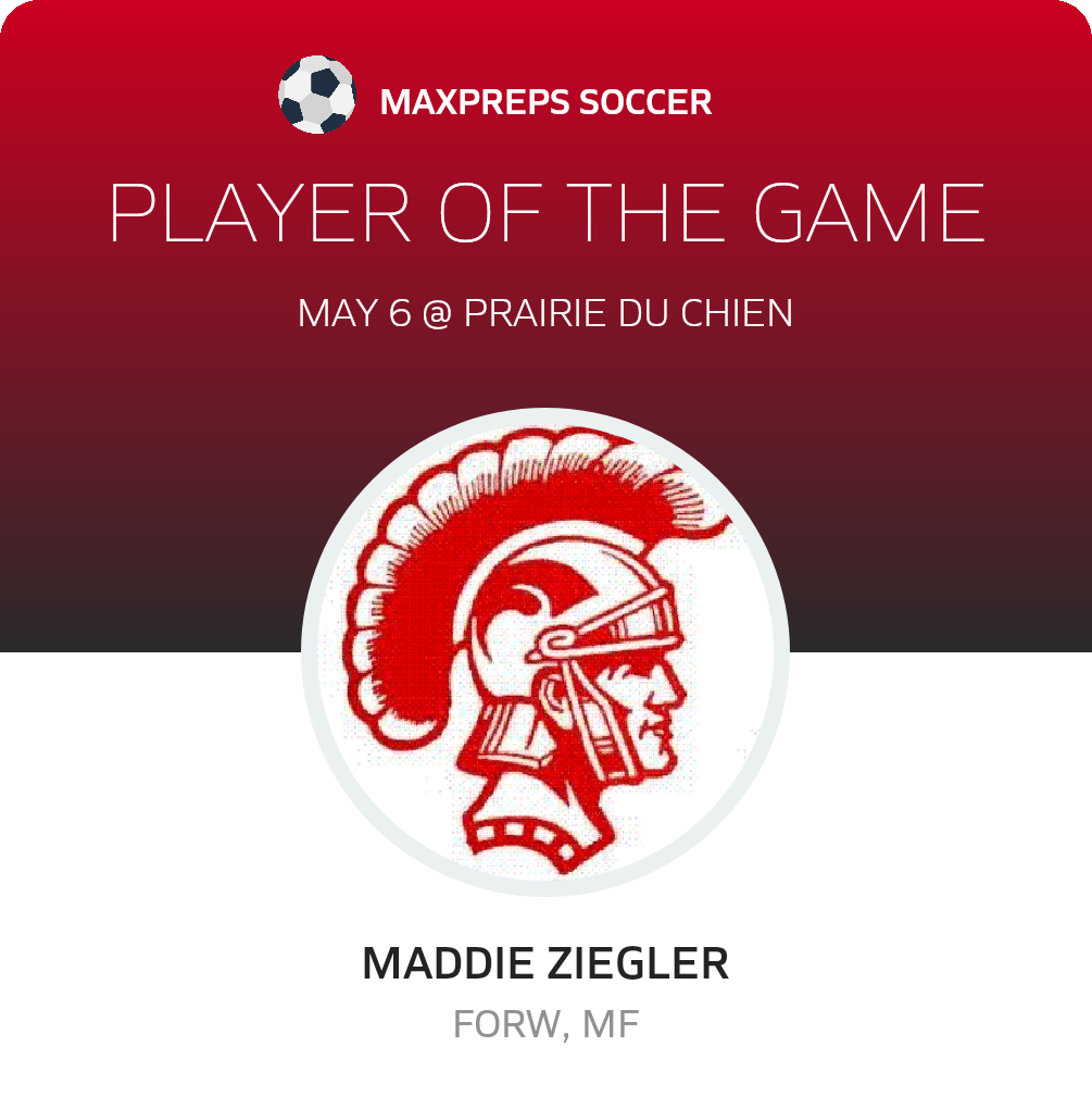 Congratulations to #5 Maddie Ziegler for being selected the Sparta Girls Soccer Player of the Match.