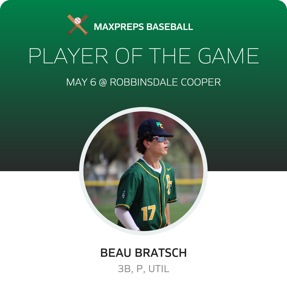 Congratulations to #11 Beau Bratsch for being selected the Park Center/Columbia Heights/Maranatha Baseball Player of the Game.