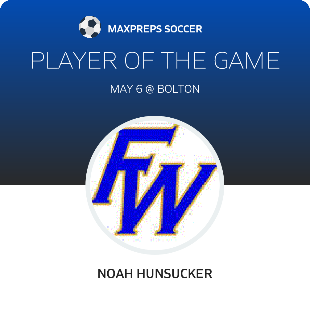 Congratulations to #2 Noah Hunsucker for being selected the Fayette Ware Soccer Player of the Match.