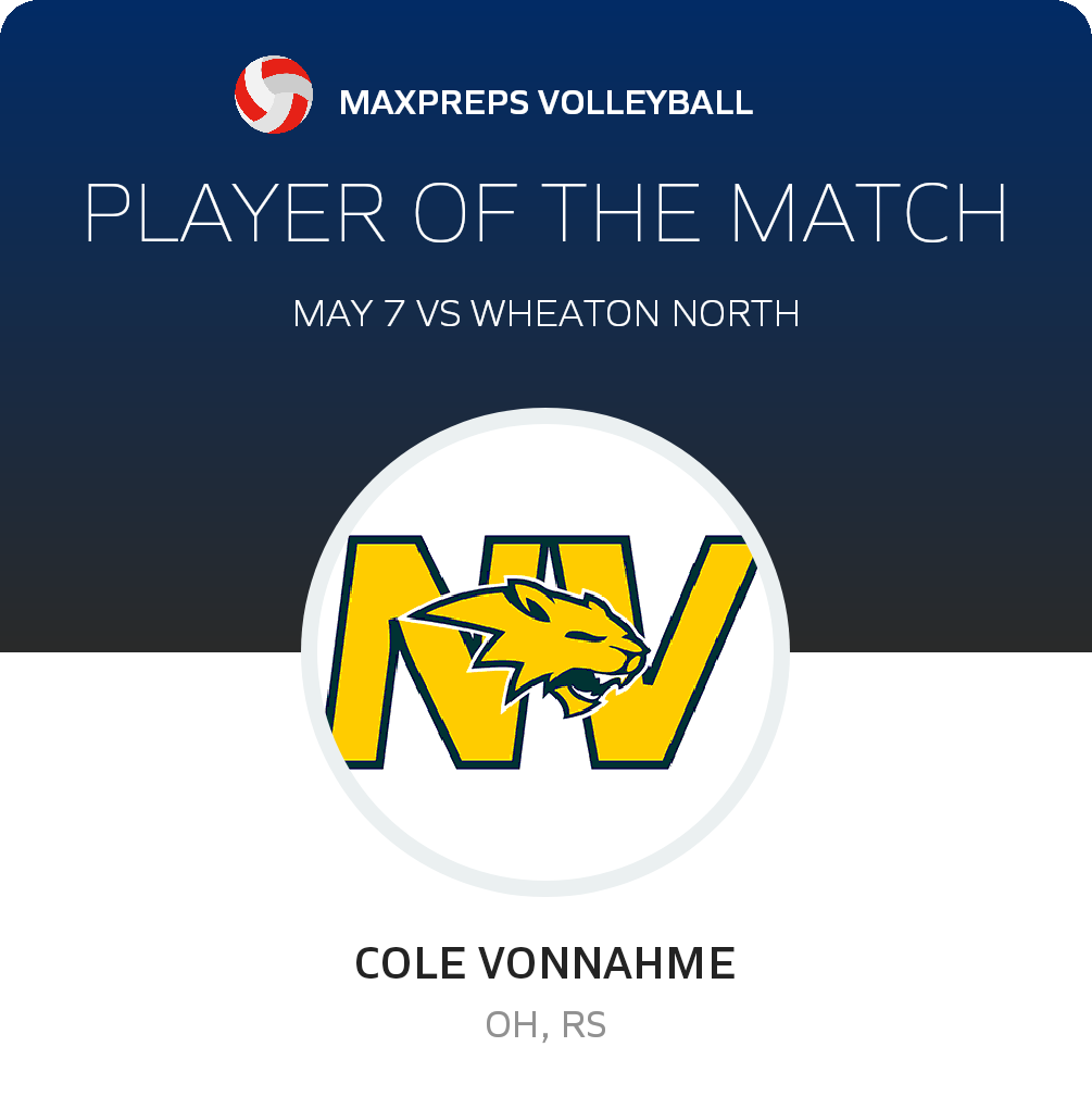 May 7, 2022: Wheaton, IL 60187 The Wheaton North Falcons volleyball team scored 2 points and limited the visiting Neuqua Valley Wildcats to 0 in the Falcons non-league victory on Saturday.