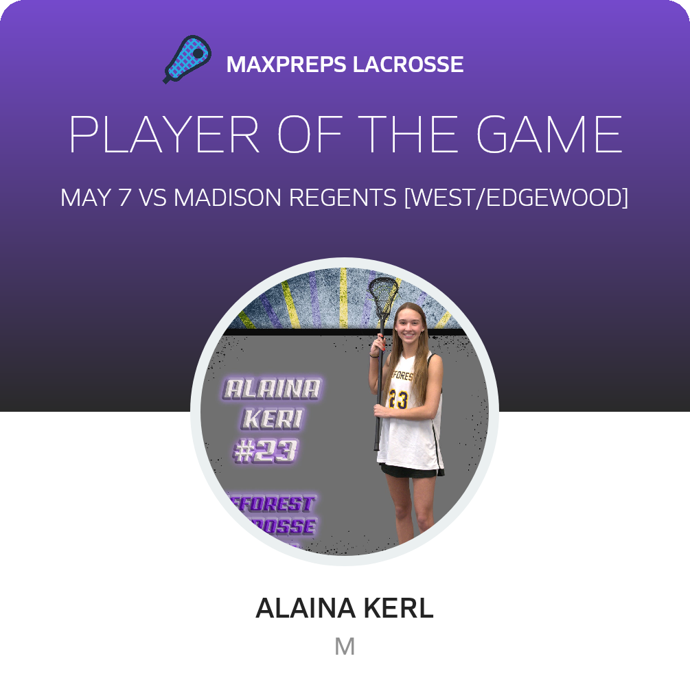 May 7, 2024: Madison, WI The Madison Regents [West/Edgewood] got by the visiting DeForest Norskies lacrosse team by a final score of 2-1 in Tuesday's league match.