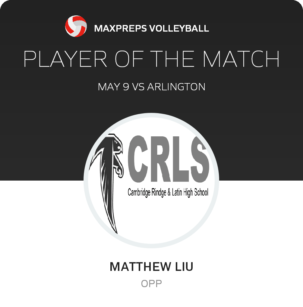 May 9, 2022: Cambridge, MA 02138 In Monday's non-league contest, the Cambridge Rindge & Latin Falcons (Cambridge, MA) volleyball squad were winner over the visiting Arlington Spy Ponders (Arlington, MA), by a margin of 3-0.
