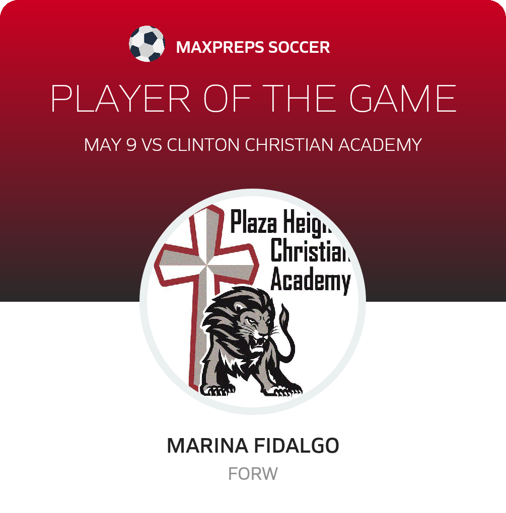 Congratulations to #24 Marina Fidalgo for being selected the Plaza Heights Christian Academy Girls Soccer Player of the Match.