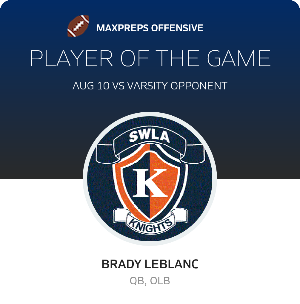 August 10, 2023: Lake Charles, LA The Southwest Louisiana HomeSchool (Lake Charles, LA) football routed the visiting Varsity Opponent (, ), 58-0 in Thursday's league bout.
