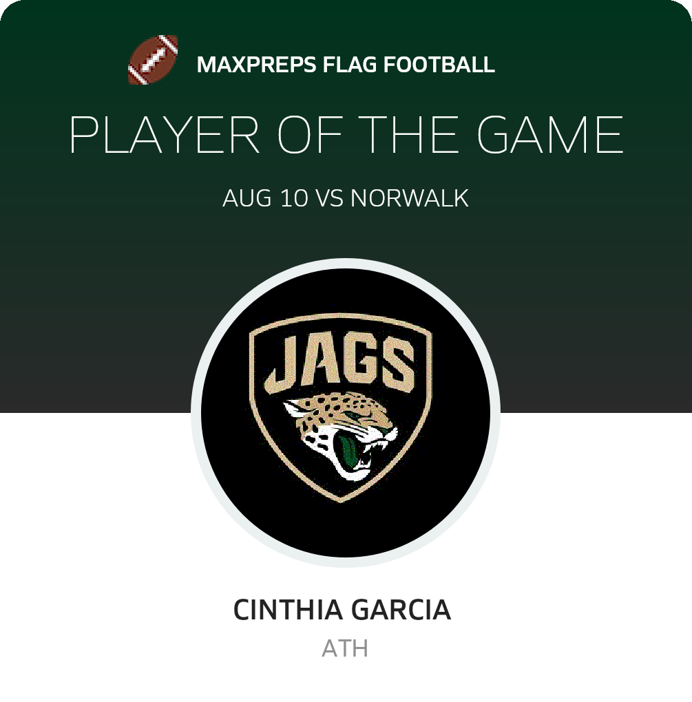 Congratulations to #9 Cinthia Garcia for being selected the Cabrillo Girls Flag Football Player of the Game.