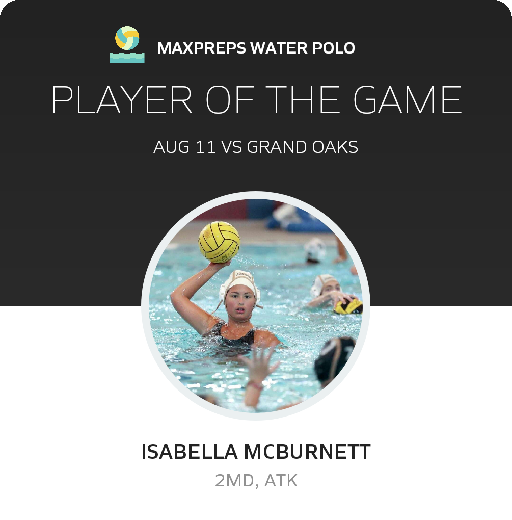 Congratulations to #9 Isabella McBurnett for being selected the Conroe Girls Water Polo Player of the Game.
