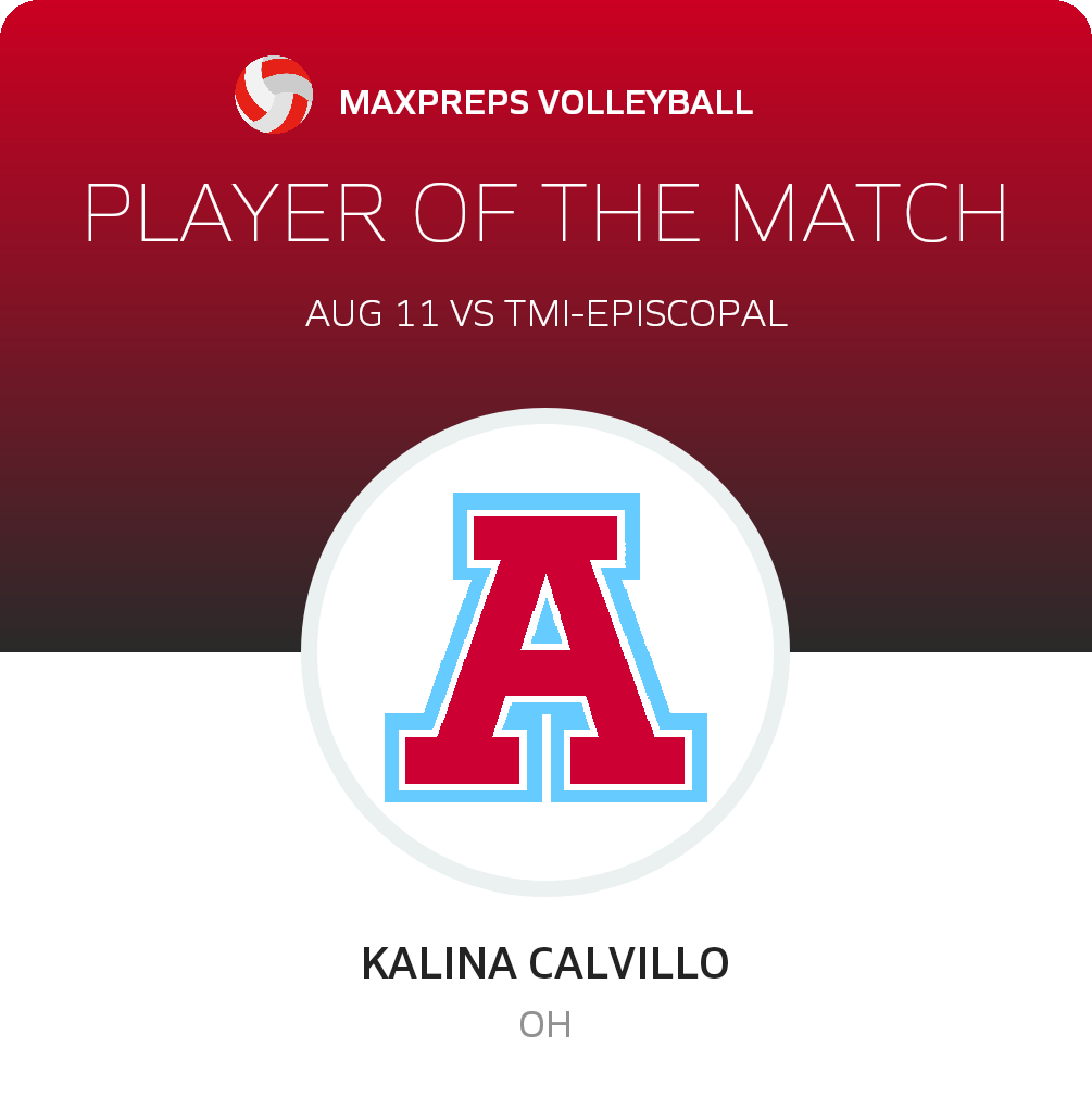 August 11, 2022: San Antonio, TX 78257 In Thursday's non-league contest, the Antonian Prep Apaches (San Antonio, TX) volleyball squad knocked off the host TMI-Episcopal Panthers (San Antonio, TX), by a margin of 2-0.