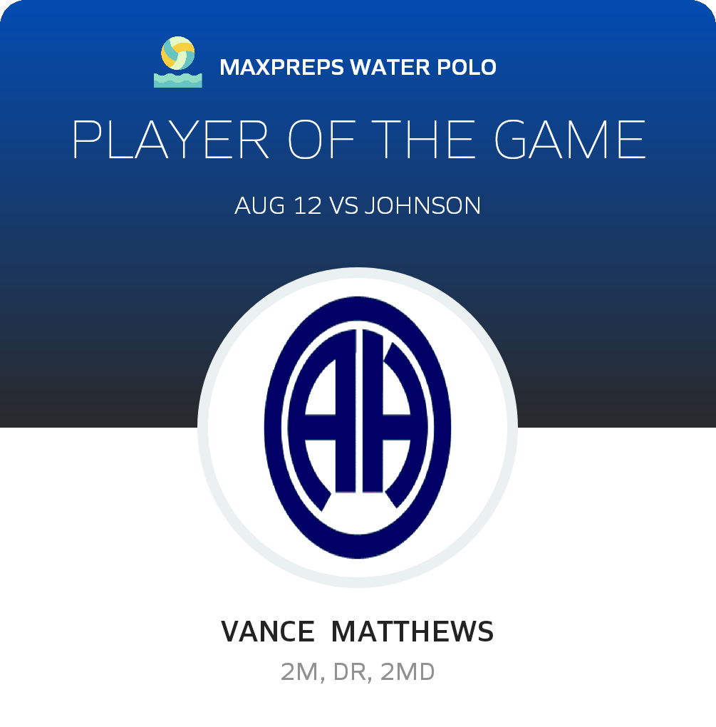 Congratulations to #9 Vance Matthews for being selected the Alamo Heights Water Polo Player of the Game.