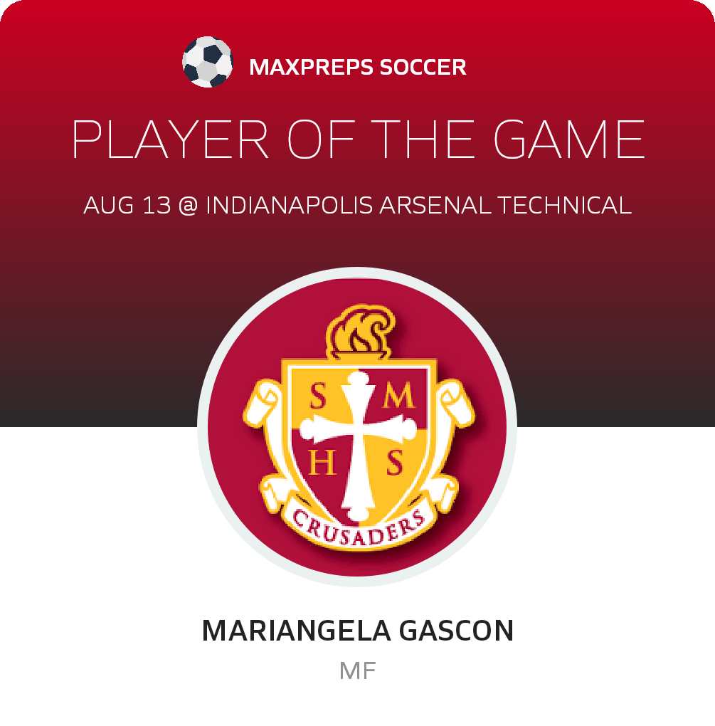 Congratulations to #13 Mariangela Gascon for being selected the Indianapolis Scecina Memorial Girls Soccer Player of the Match.