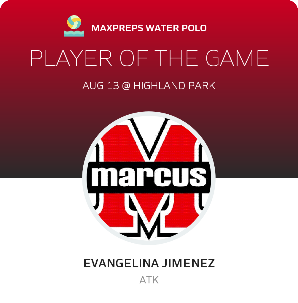 Congratulations to #9 Evangelina Jimenez for being selected the Marcus Girls Water Polo Player of the Game.