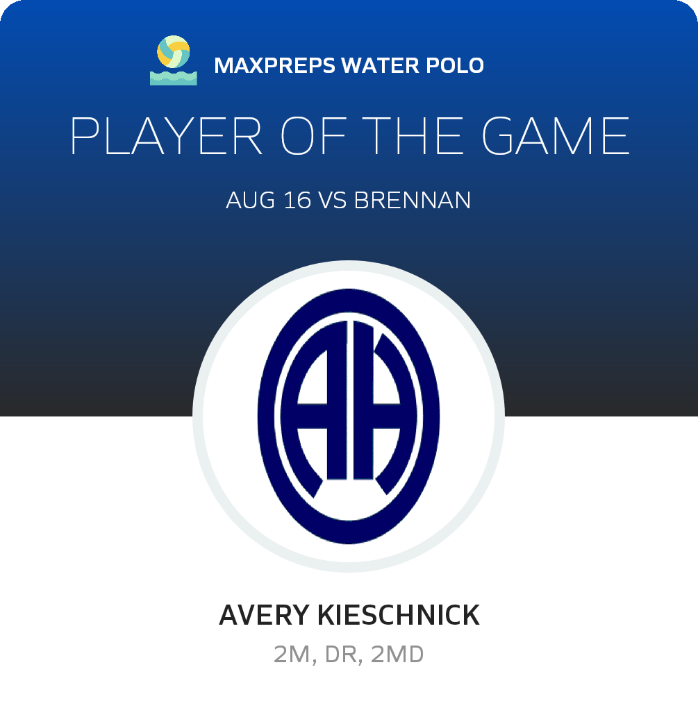 Congratulations to #6 Avery Kieschnick for being selected the Alamo Heights Girls Water Polo Player of the Game.