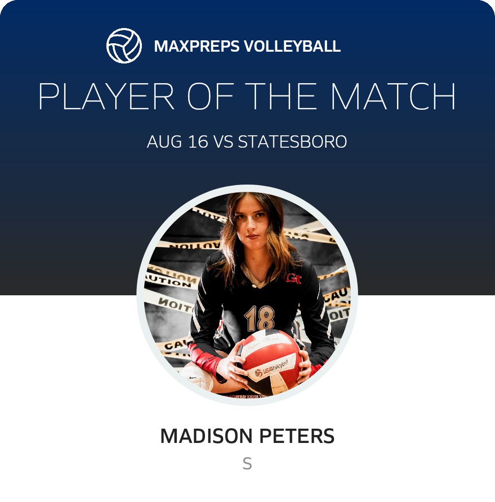 Congratulations to #18 Madison Peters for being selected the Grovetown Volleyball Player of the Match.