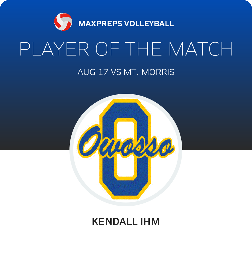 Congratulations to #6 Kendall Ihm for being selected the Owosso Volleyball Player of the Match.
