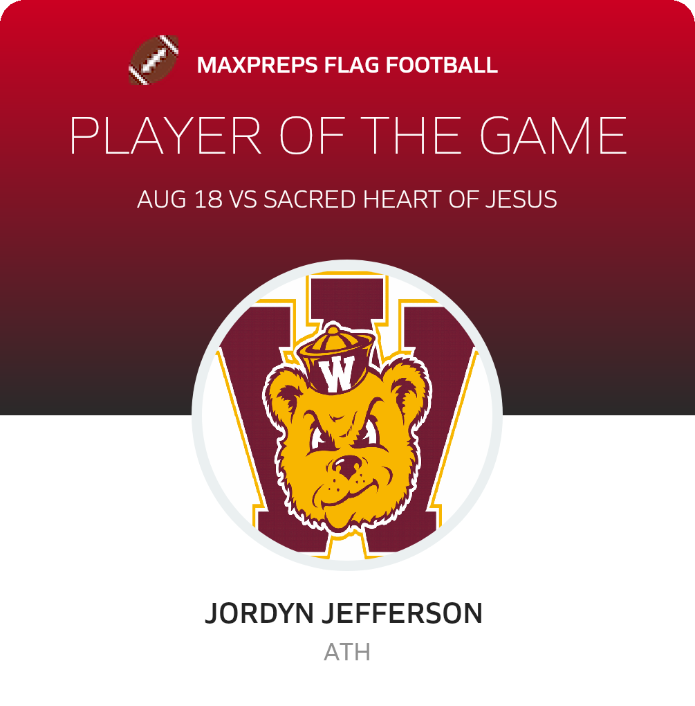 Congratulations to #15 Jordyn Jefferson for being selected the Woodrow Wilson Girls Flag Football Player of the Game.