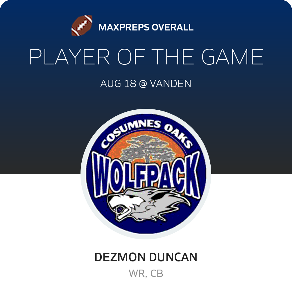 Congratulations to #1 Dezmon Duncan for being selected the Overall, Defensive and Special Teams Cosumnes Oaks JV Football Player of the Game.