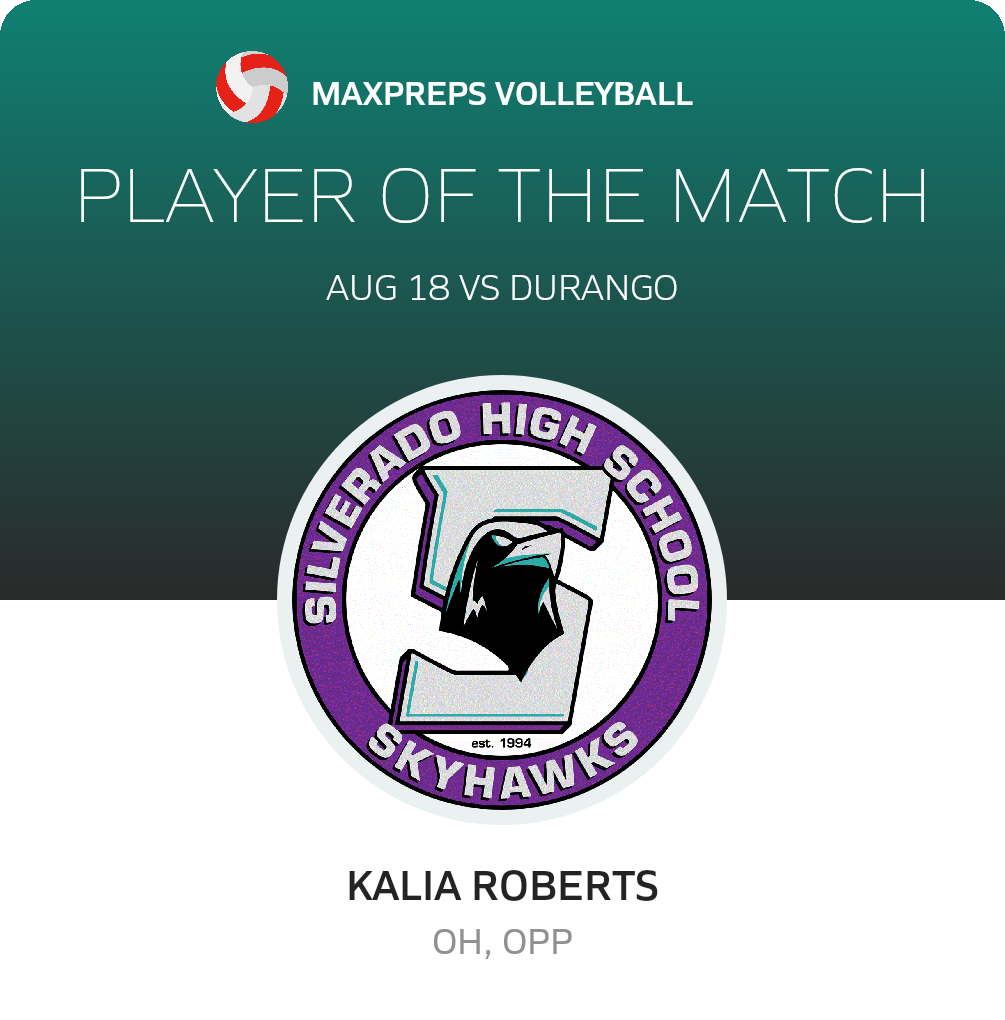 August 18, 2023: Las Vegas, NV 89113 The Silverado Skyhawks volleyball team scored 2 points and limited the host Durango Trailblazers to 0 in the Skyhawks non-league victory on Friday.