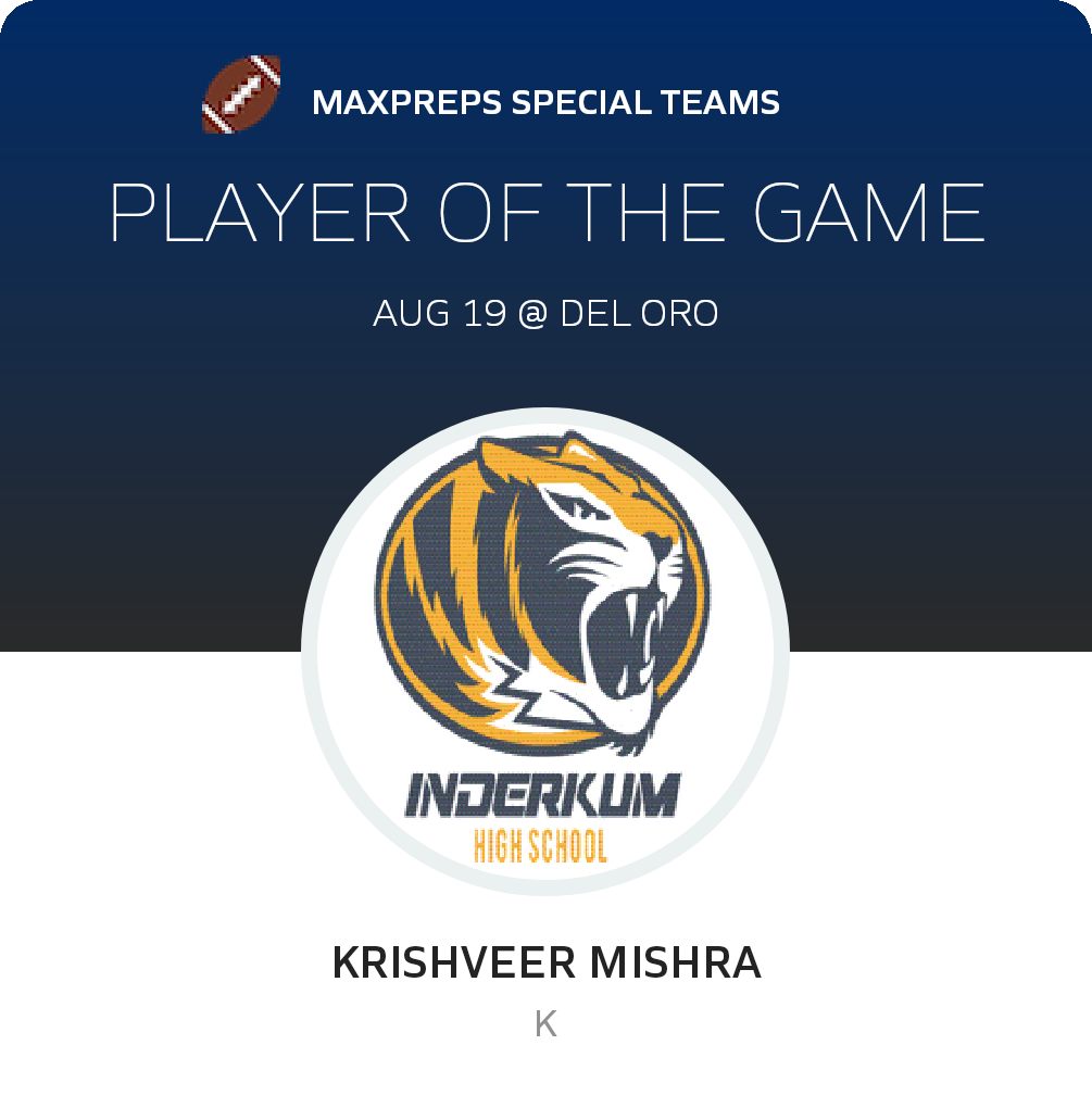 Coming up next, the Tigers play the Grant Pacers (Sacramento, CA) in a non-league battle, on Friday, August 26. Inderkum will attempt to advance on its 0-1 season record. The Pacers go into the battle with a 1-0 record after their 42-0 non-league win over McQueen (Reno, NV).