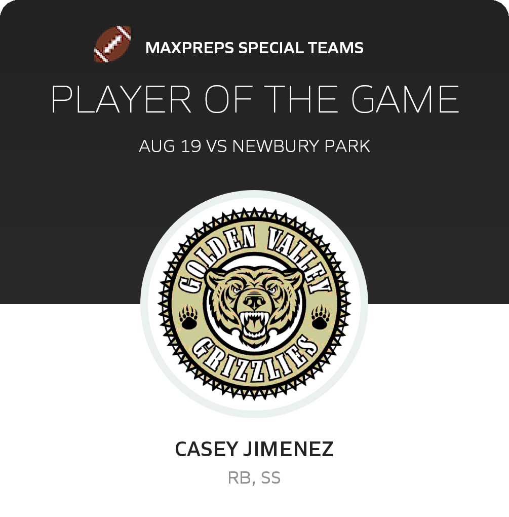 The Grizzlies now hold a 0-1 record. They take the field next when they travel to Antelope Valley for a non-league game on Friday, August 26. Golden Valley will play a Antelopes squad coming off a 50-0 non-league loss to Oak Hills (Hesperia, CA). The Antelopes record now stands at 0-1.