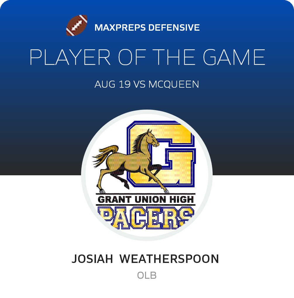 In their next game, the Pacers face the Inderkum Tigers (Sacramento, CA) in a non-league bout, on Friday, August 26. Grant will attempt to move on its 1-0 season record. The Tigers enter the bout with a 0-1 record after their 35-8 non-league loss to Del Oro (Loomis, CA).