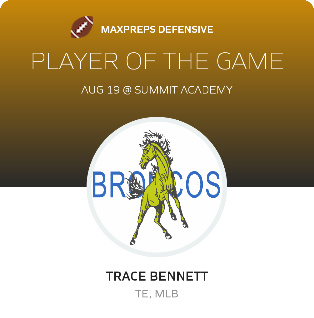 August 19, 2022: Bluffdale, UT 84096 The San Juan Broncos football squad scored 42 points and restricted the host Summit Academy Bears to 28 in the Broncos non-league victory on Friday.