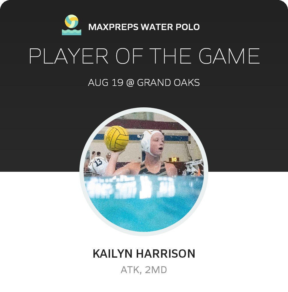 Congratulations to #5 Kailyn Harrison for being selected the Conroe Girls Water Polo Player of the Game.