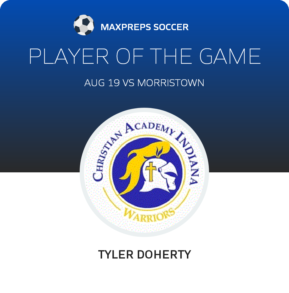 Congratulations to #10 Tyler Doherty for being selected the Christian Academy Soccer Player of the Match.