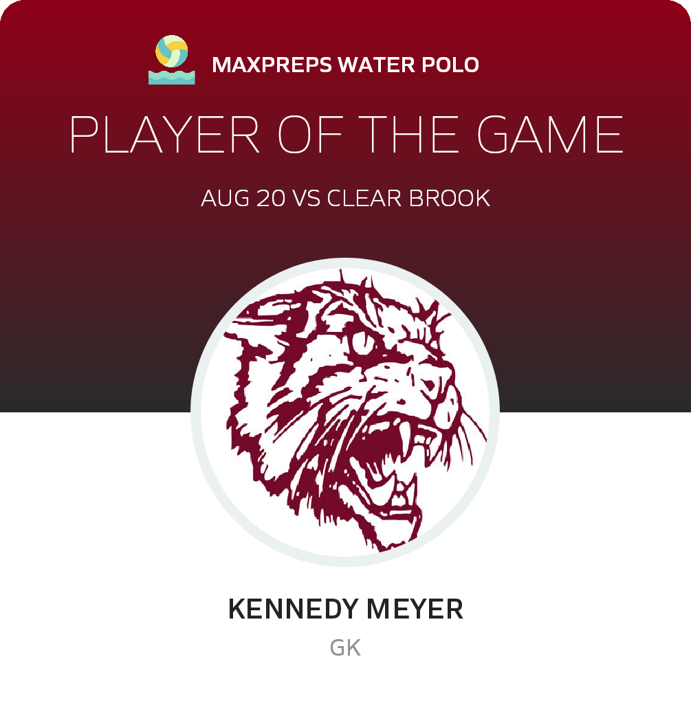 Congratulations to #1 Kennedy Meyer for being selected the Clear Creek Girls Water Polo Player of the Game.