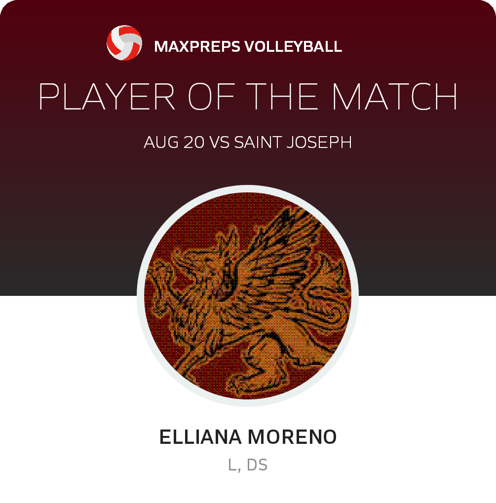 Congratulations to #3 Elliana Moreno for being selected the Notre Dame Academy Volleyball Player of the Match.