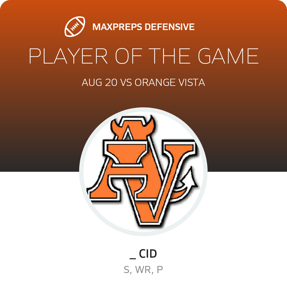 The Apple Valley (CA) freshman football team won Wednesday's home non-conference game against Orange Vista (Perris, CA) by a score of 24-14.