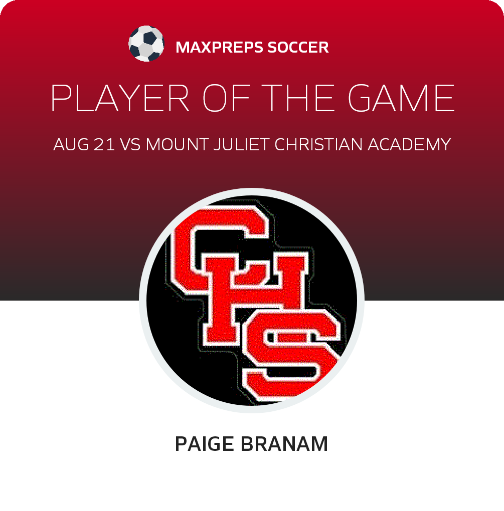 Congratulations to #24 Paige Branam for being selected the Knoxville Central Girls Soccer Player of the Match.