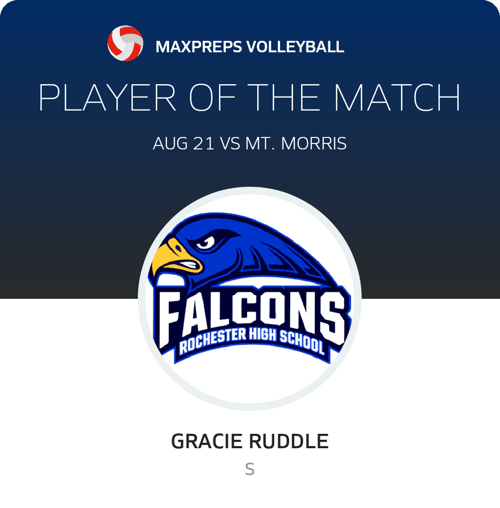 Congratulations to #5 Gracie Ruddle for being selected the Rochester Volleyball Player of the Match.