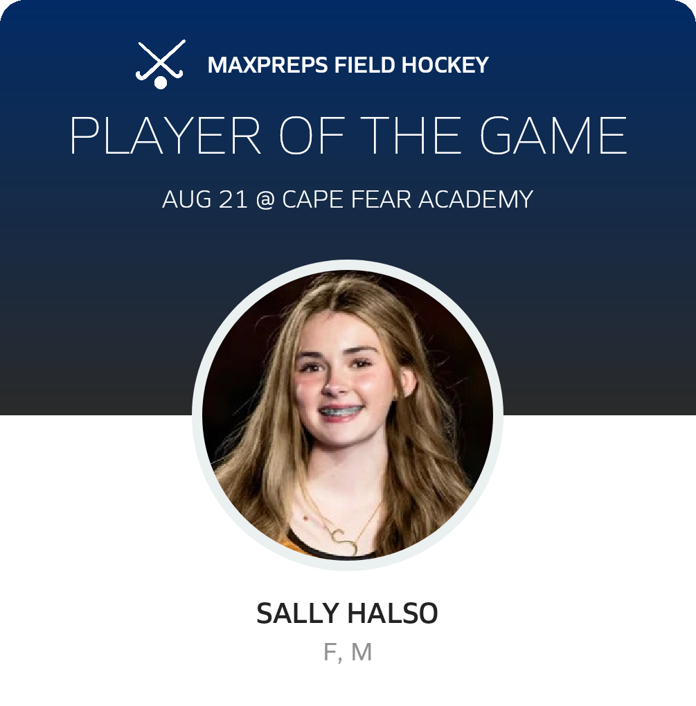 Congratulations to #23 Harper van Vliet for being selected the Cape Fear Academy Field Hockey Player of the Game.
