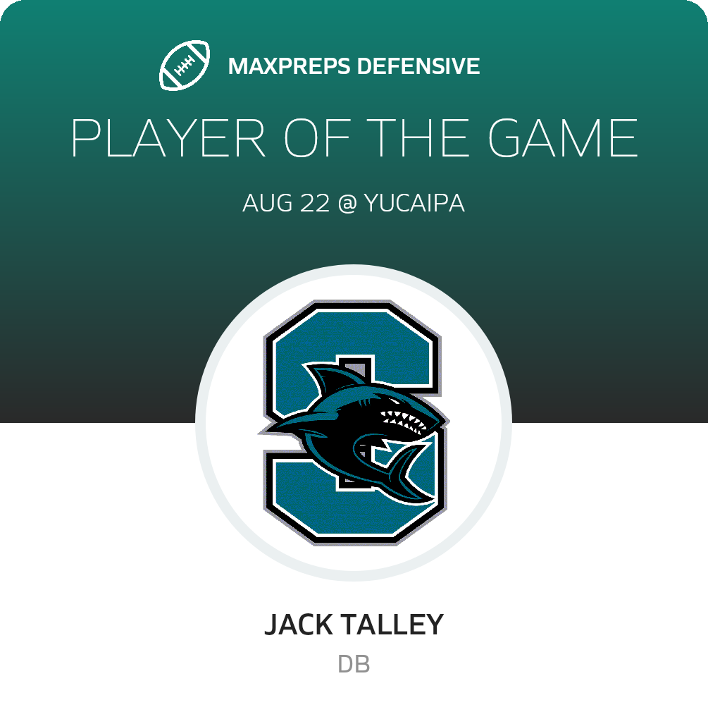 August 22, 2025: Yucaipa, CA 92399 The Santiago Sharks football squad scored 31 points and limited the host Yucaipa Thunderbirds to 14 in the Sharks non-league triumph on Friday.
