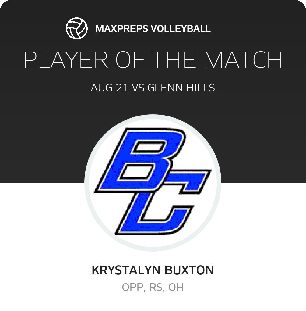 Congratulations to #5 Krystalyn Buxton for being selected the Burke County Volleyball Player of the Match.